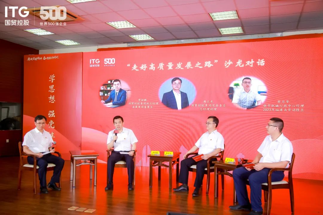 活动邀请国贸控股集团副总经理、海翼集团董事长曾挺毅,国贸控股集团党委委员、总经理助理詹志东,银华机械行政中心经理、2023年福建省劳模蔡月华三位嘉宾聚焦国贸控股集团在高质量发展之路上奋勇前行的积极成效开展“走好高质量发展之路”沙龙对话。